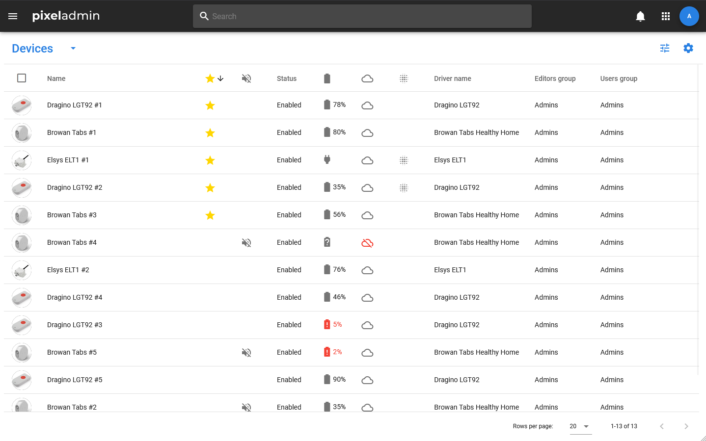 • Favorites — mark whether the device has been added to favorites.