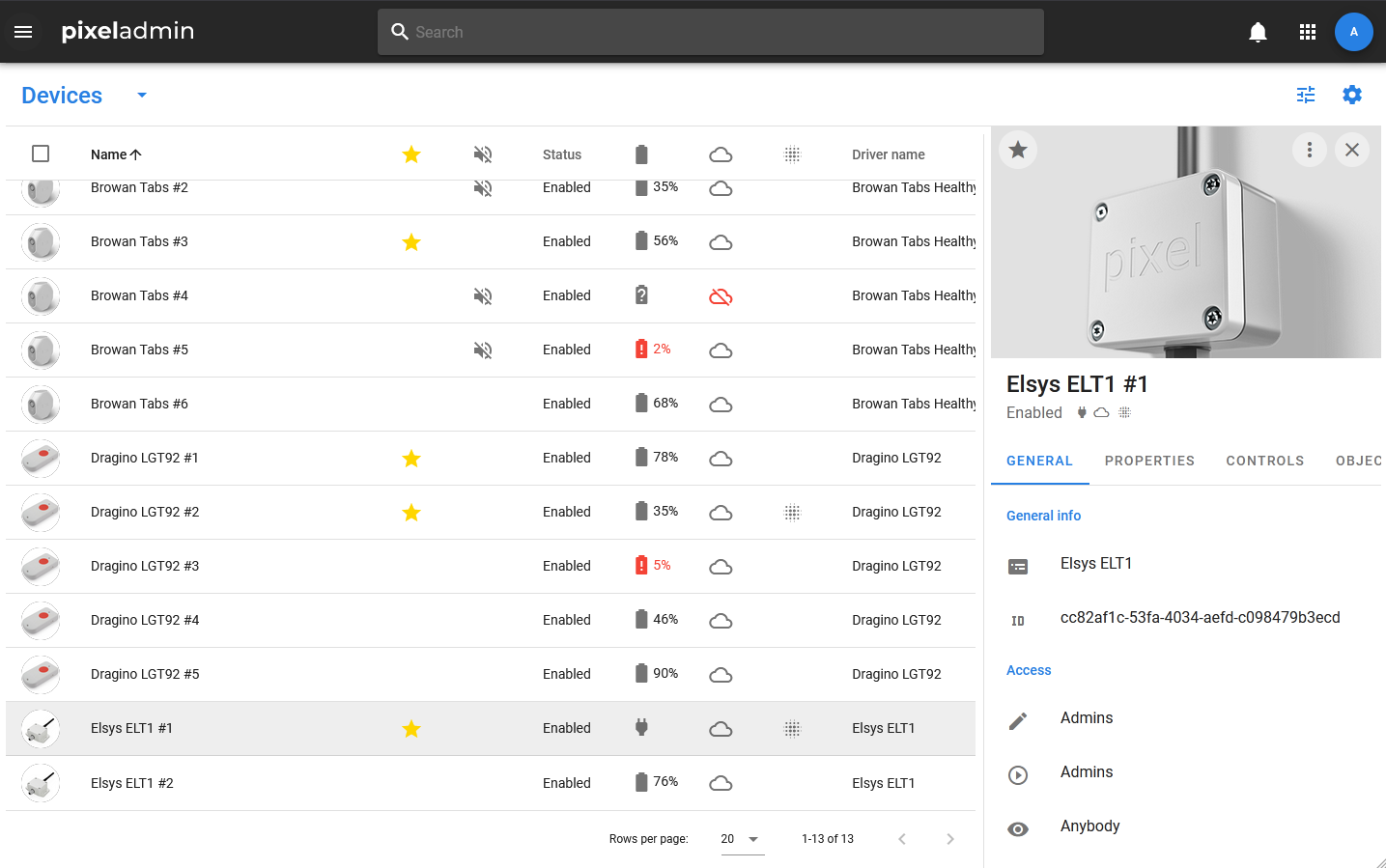 • OBJECTS — a tab with a list of objects (datasets, media, and other devices) associated with this device.