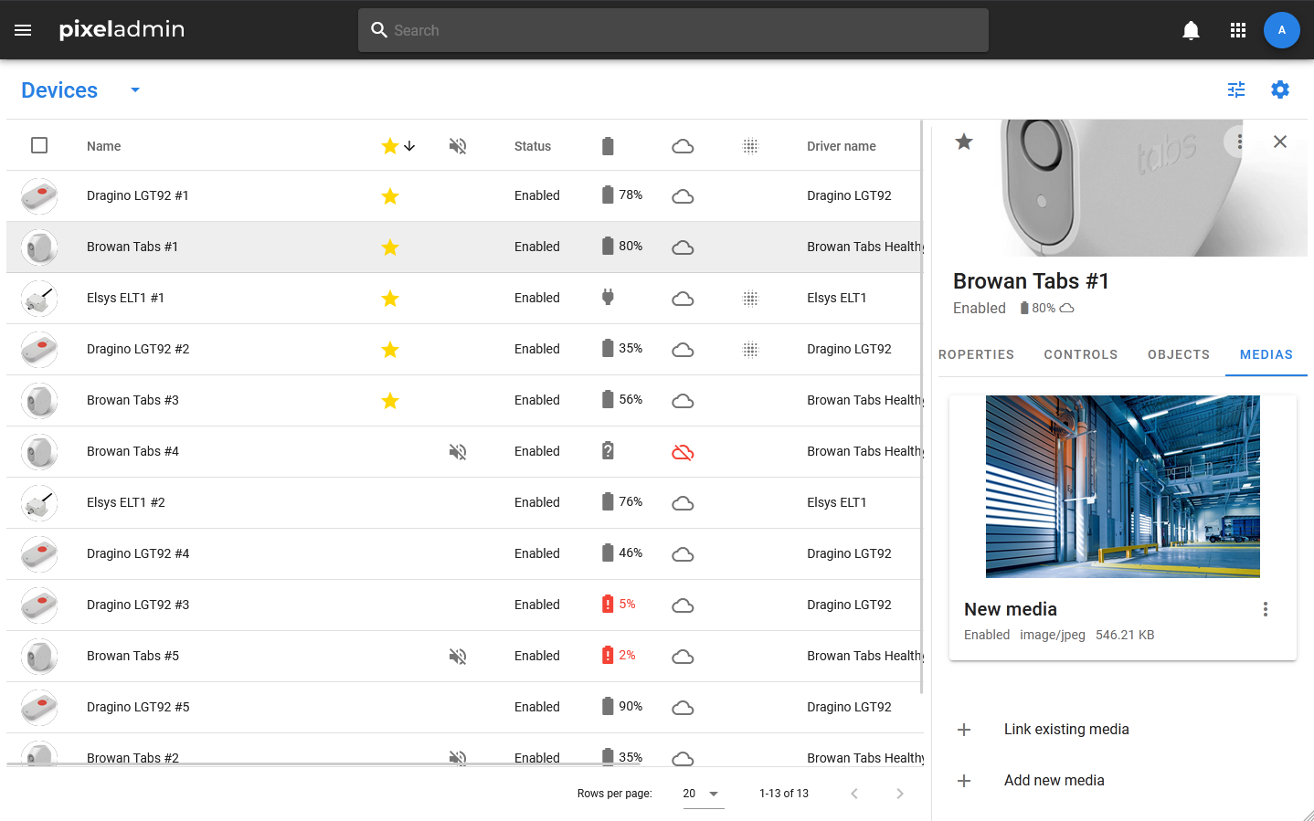 • MEDIAS — a tab that displays a list of media linked to the device.